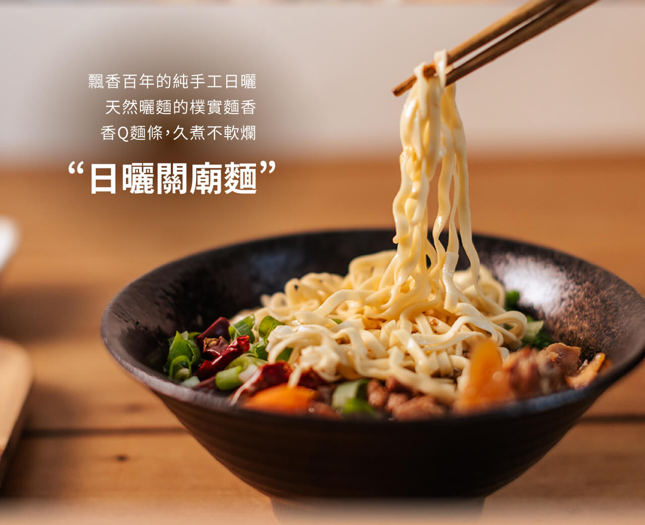 • 百年手工關廟麵,日曬工法Q彈有勁